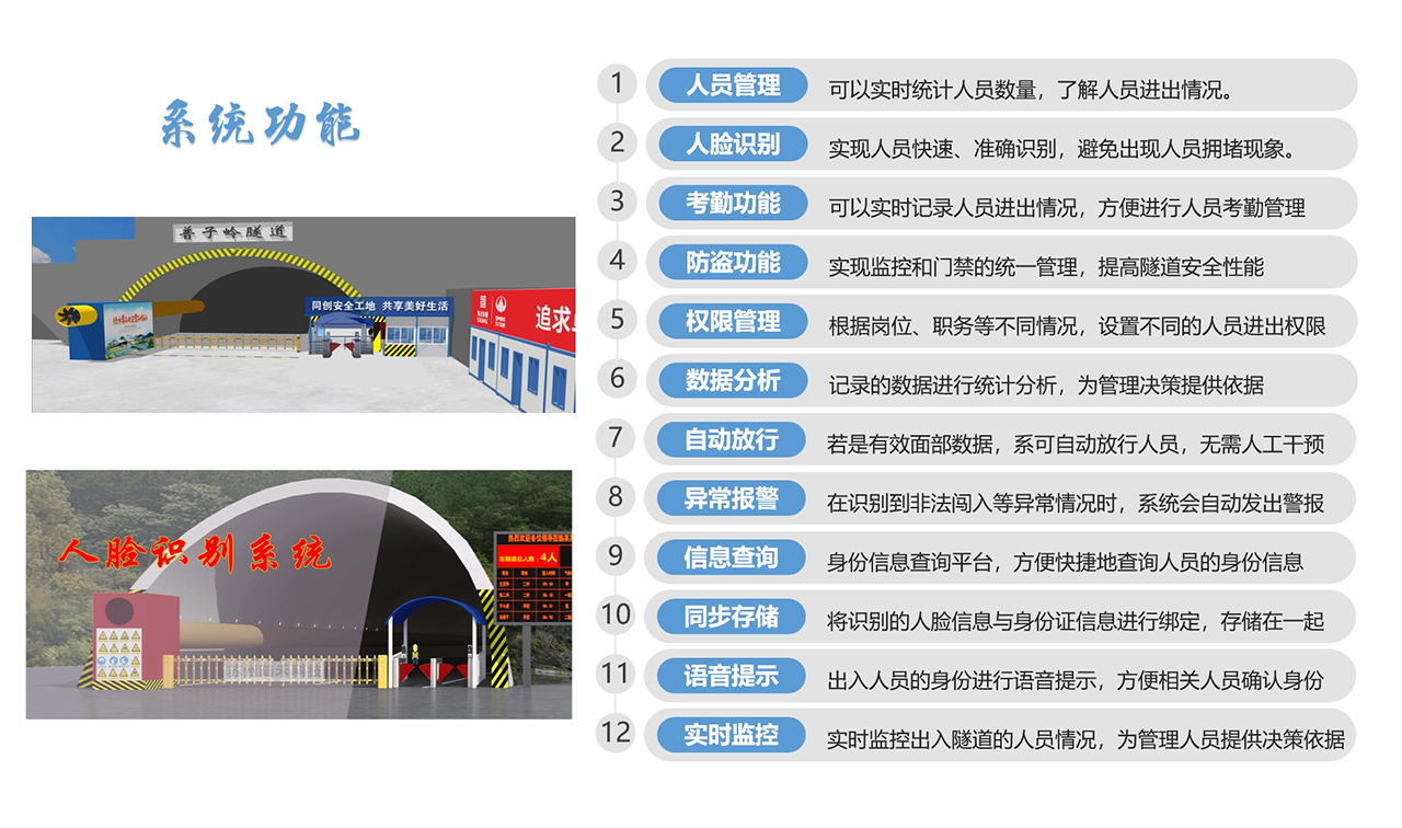1. 人员管理:可以记录进入隧道的人员进出记录,提高管理效率。