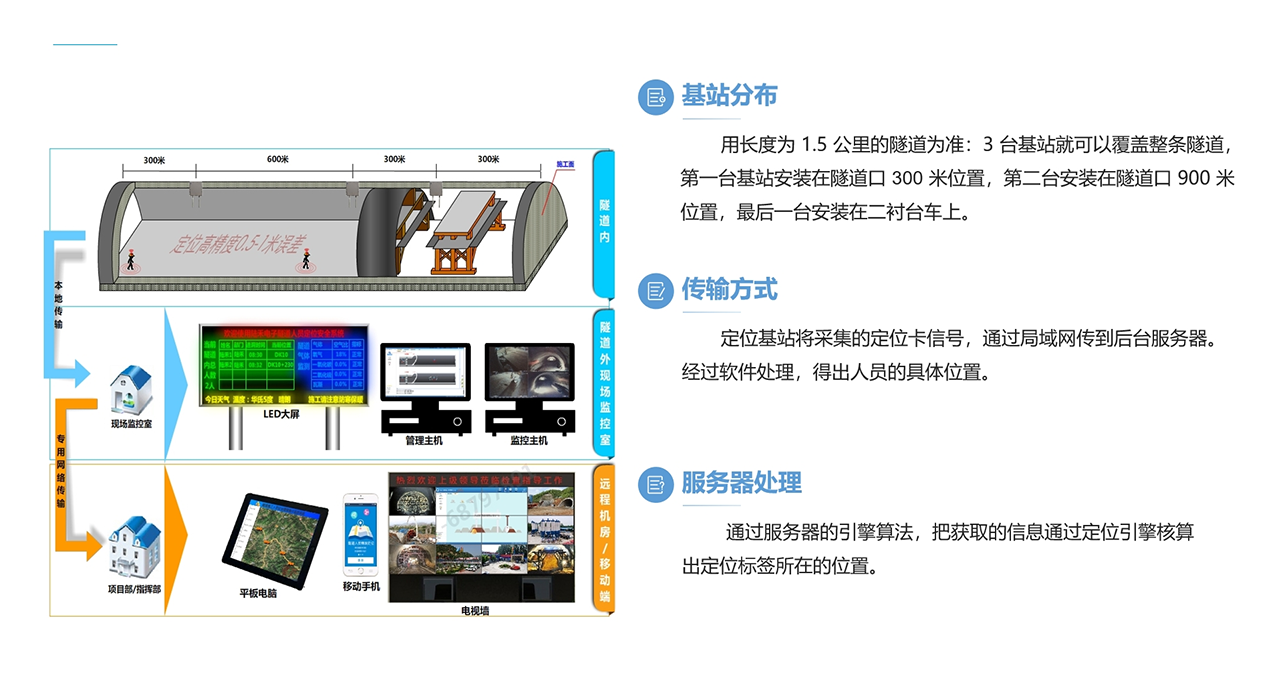 3. 实时监控:系统可以实时监控隧道内的情况,包括人员和车辆的位置,提高管理效率。